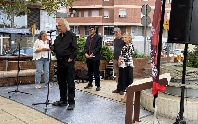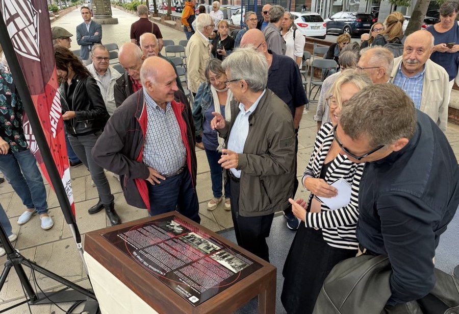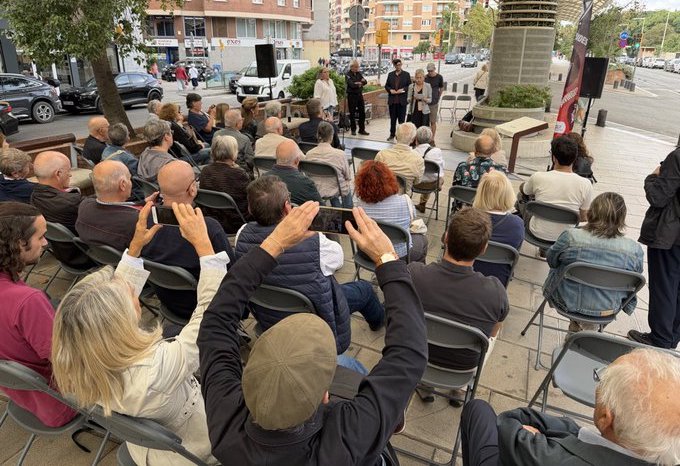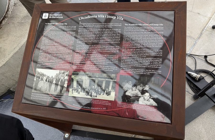13-10-2025 / Esta tarde se ha celebrado en la zona peatonal de la calle Aragón, en la intersección de la calle del Clot, un acto de homenaje a la Academia Vila, el emblemático centro educativo del Clot y Camp de l’Arpa que desapareció en 1966. En ese lugar estaba la escuela que dirigió el maestro Josep Vila.