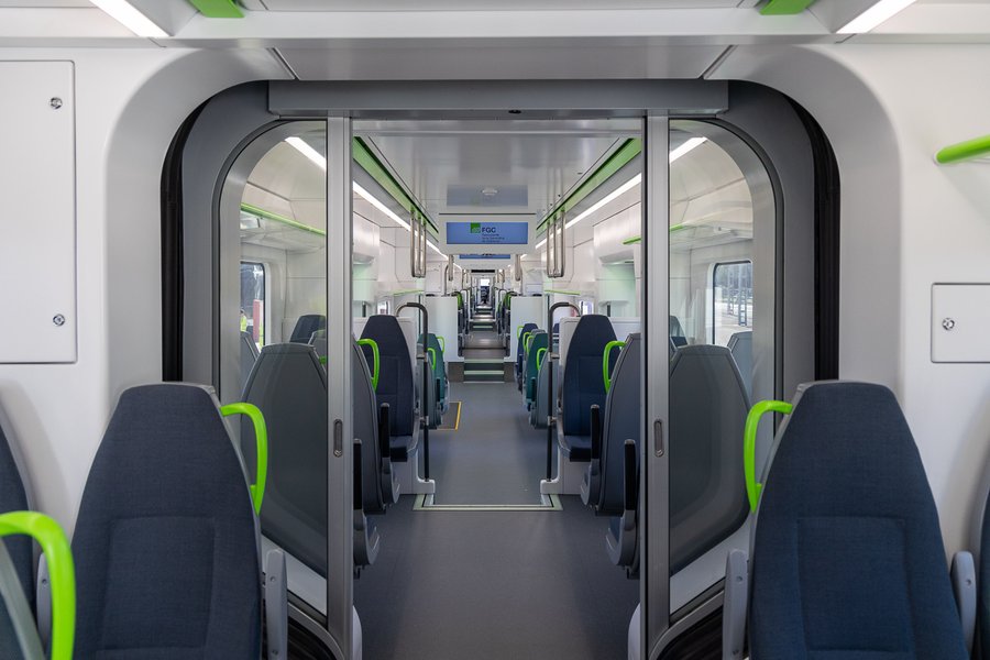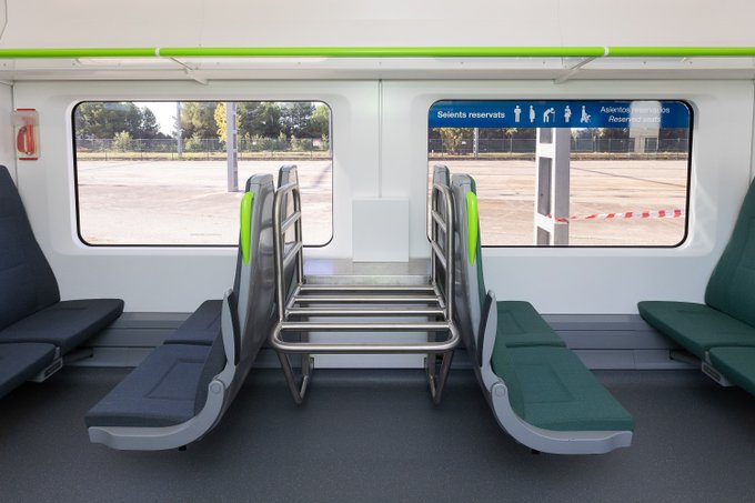 The first Coradia Stream for @FGC is ready! These new trains, built by @Alstom, will be used on the R-Aeroport line, a fast service linking Barcelona-El Prat Airport ✈️ with the city. They have capacity for 656 passengers, featuring wider aisles and dedicated luggage spaces. pic.twitter.com/uatYTzzpgw