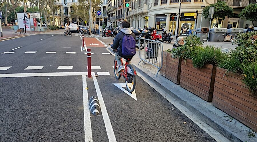 En concreto, la red ciclable se ha ampliado en 47 metros. Hasta ahora, el carril bici se acababa abruptamente a medio camino entre la Diagonal y la calle de Bonavista, en el acceso de un aparcamiento, por lo que las bicicletas debían incorporarse al carril de circulación de los vehículos.