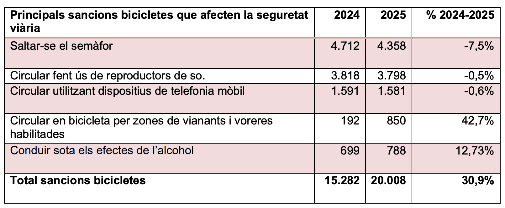les sancions per estacionaments de bicicletes que passen de 1.816 a 5.790.